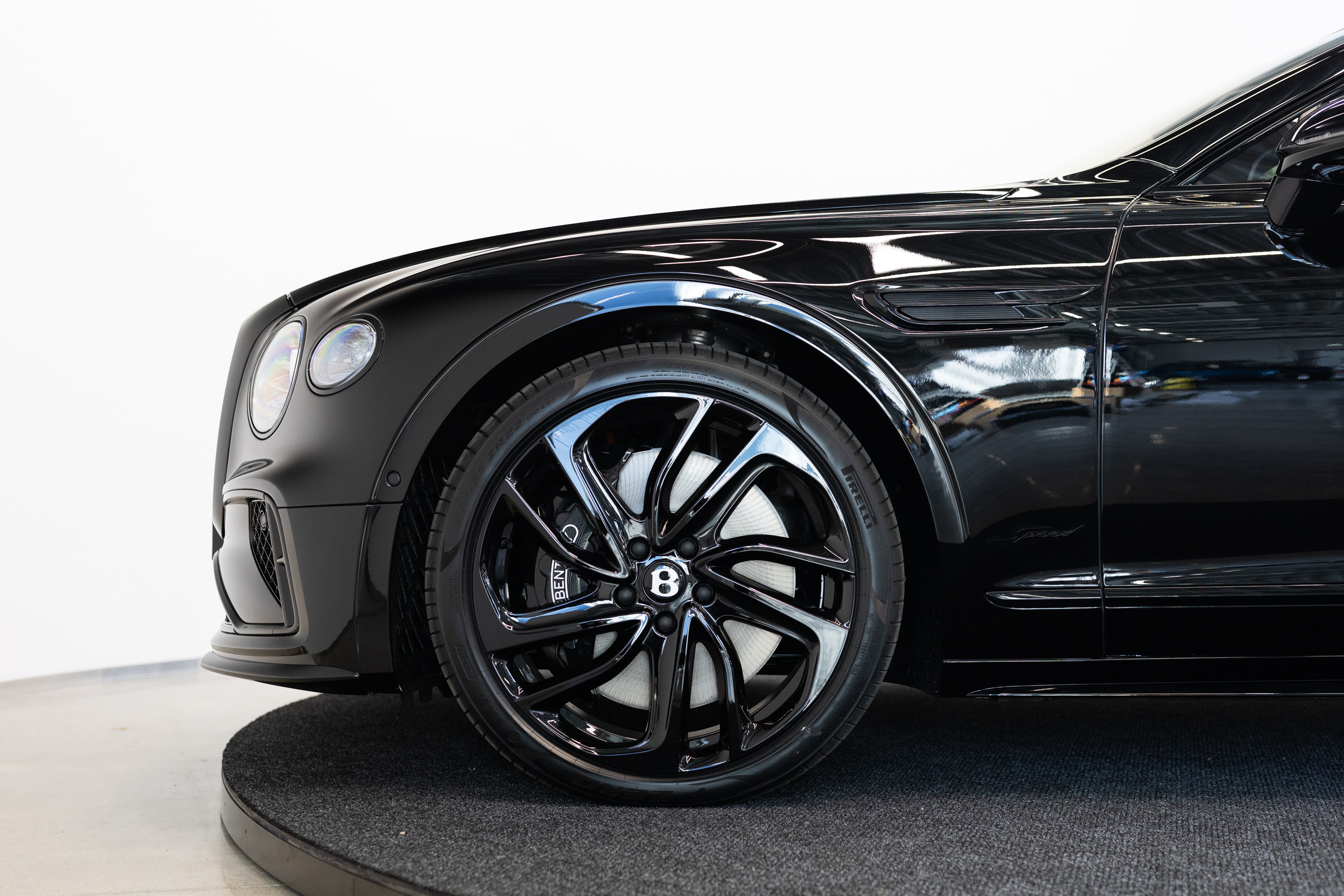 - Pakett Flying Spur Blackline - läikivmust maatriksvõre kaitseraua alaosa avadel; läikivmustad uksekäepidemed; läikivmustad võrud ümber esitulede; läikivmustad ehisliistud uste alaosas; läikivmust maatriksesivõre musta äärisega; läikivmust ehisliist t