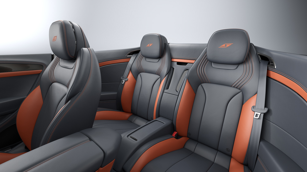 Nagu kõigil Bentley S-mudelitel, on istmete tepingud vertikaalse lainelise mustriga, kuna tikitud S-embleemid aitavad samuti autot tuvastada – eriti kui see seisab ja katus on alla lastud.